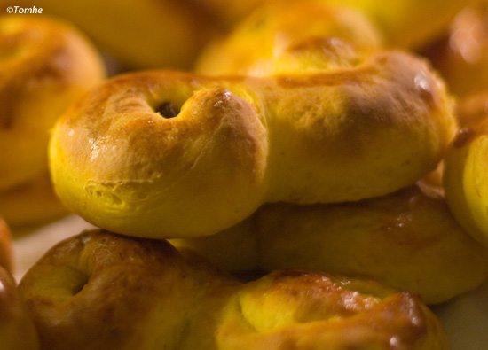 You won't want to miss these fragrant saffron-flavoured buns "(lussekatter"), shaped like curled-up cats and with raisin eyes, this December. Traditional cakes baked all across Scandinavia, you eat them for Saint Lucy's day, with glögg or coffee.